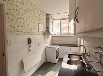 Cocina definida con doble mesada, variedad de placares y buen espacio de almacenamiento, campana extractora, ventanas, puerta de servicio y habitación/lavadero.