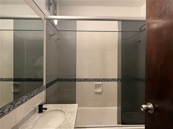 2 baños, uno de ellos baño completo con bañera y mampara.